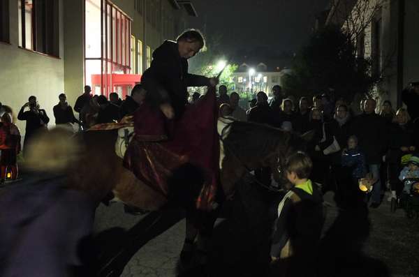 Die Pferde, die am Umzug teilnehmen, freuen sich schon das ganze Jahr auf diesen Abend, weil sie zum Abschluss von den Kindern immer fleißig mit Karotten gefüttert werden.